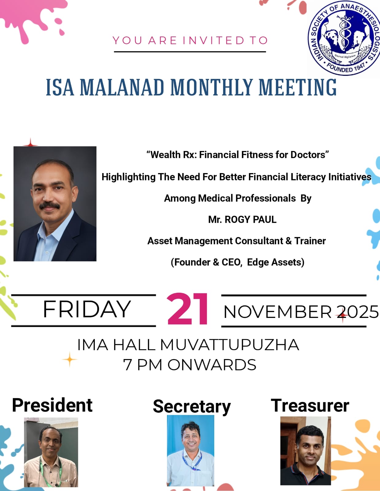 Highlighting the need for better financial literacy among medical professionals by Mr. Rogy Paul, Asset Management Consultant & Trainer.